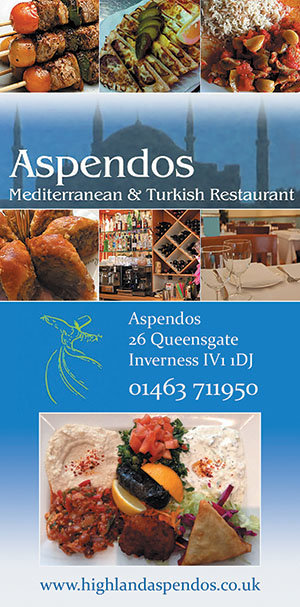Inverness is hardly short of fine dining restaurants, yet Aspendos stands out from the crowd, having has built its reputation on a lively atmosphere, first-rate service and – most crucially – excellent food. This cheerful, modern restaurant specialises in authentic Mediterranean and Turkish dishes, and offers excellent value for money without sacrificing the quality in the process. The menu is chock full of delights, with a wide range of skewers, seafood dishes, meat grills, mezes and vegetarian options at hand. Choose from traditional starters like soslu patlican (aubergine, peppers and yoghurt cooked in a sauce with olive oil) and borek (filo pastry stuffed with feta cheese and spinach, then deep fried) before taking your pick of the main courses. Popular dishes include karniyarik (aubergine stuffed with minced lamb) and guvec (chicken or lamb cooked with onions and peppers). Whatever you opt for, you’re sure to enjoy the laid-back atmosphere and friendly, attentive service. If you find yourself paralysed by choice upon inspecting the menu, consider trying the appetiser banquet. It’s a great way to get a taste for the quintessential flavours of Aspendos. Needless to say, you can choose from a range of drinks, including wines, lagers and delicious Turkish coffee, to round off your meal